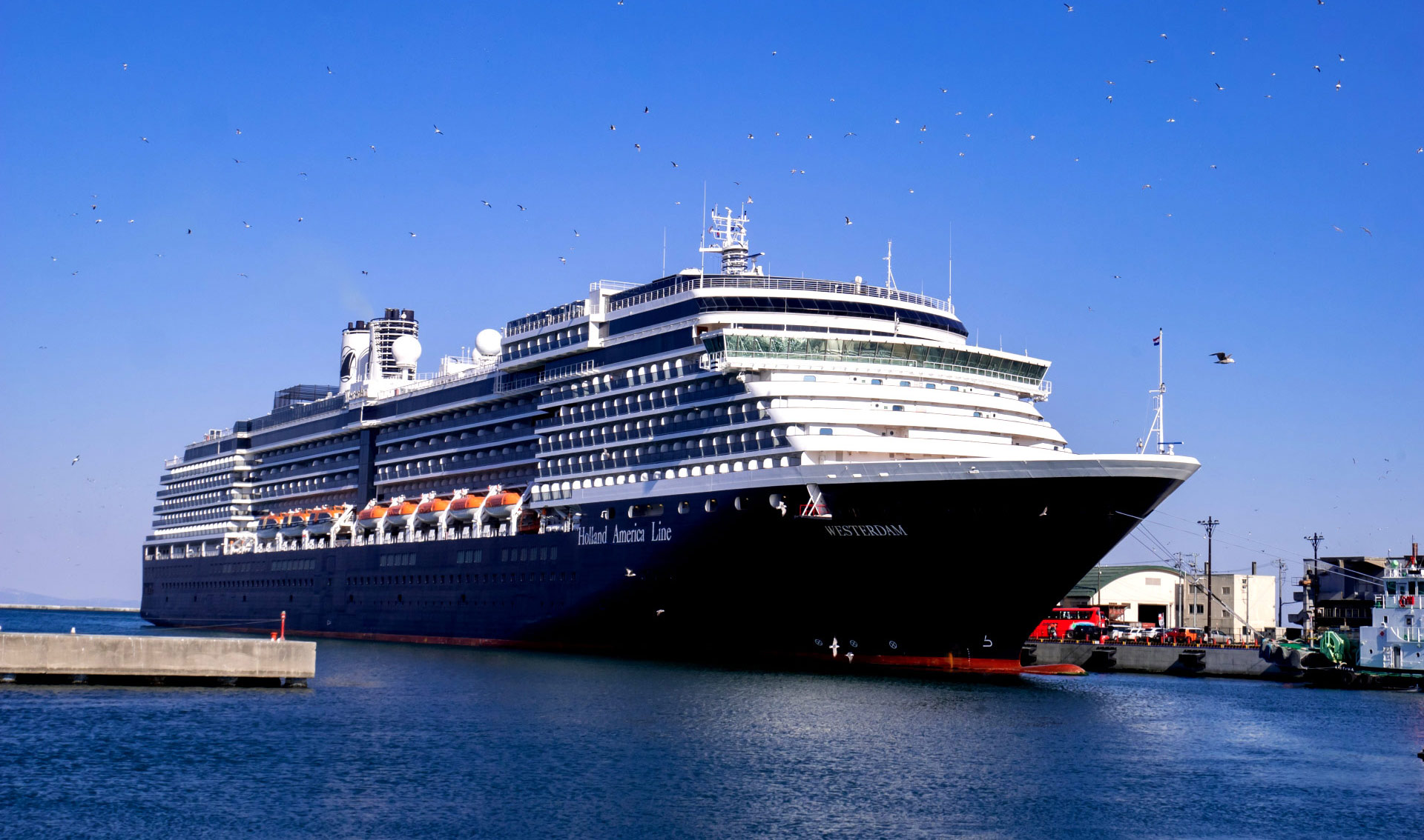 港に別れを告げる汽笛がこだまする中、遠ざかっていく景色――